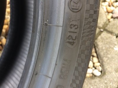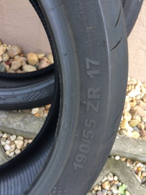 Das Hinterrad ist DOT 4213 und ist nur ganz wenig gefahren - ich denke das sieht man ganz gut auf dem Foto (Conti-Schriftzug noch teilweise erhalten)