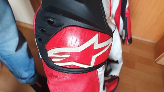 Er ist gut in Schuss, hat aber am linken Schulterprotektor ein paar Kratzer von einem Umfaller in feuchtem Gras als mir beim Anfahren das Vorderrad wegrutschte. Gleich daneben hat auch das Leder etwas abbekommen (siehe Fotos). Weiterhin wäre evtl der Zipper des Reissverschlusses zu tauschen. Das Griffstück hat sich irgendwann mal einfach verselbstständigt. Hatte zuletzt immer ein Stück Schuhband durchgefädelt,