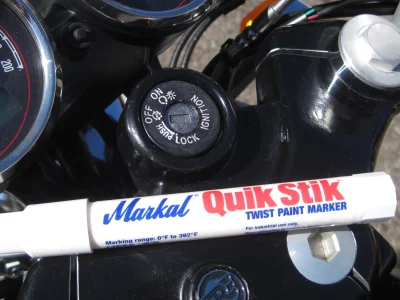 Auch die vertieften Schriftzüge am Zündschloß wurden dort wo schon weiße Farbe fehlte (eigentlich fast überall) "nachgemalt".