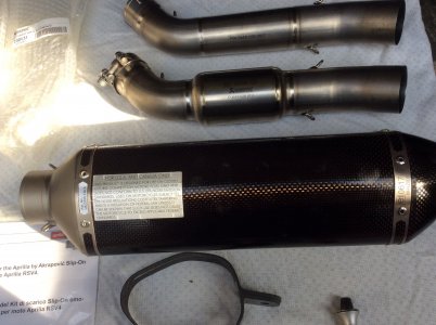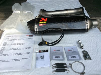 biete diese Akra-Anlage für die 2016er Tuono 1100 an. Den Topf hatte ich einmal in Zolder montiert😊