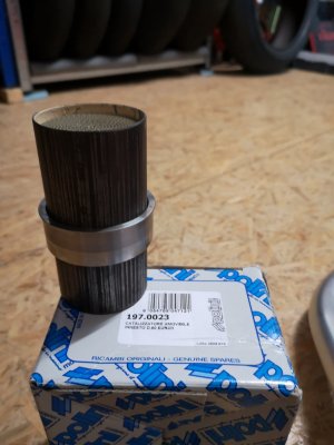 Moin. So, hier die Infos der Arrow und dem Kat. Du weißt ja das du dann auch den Eliminator von der Firma HealTech an den Servomotor (bezüglich dann fehlender Auspuffklappe) klemmen musst. Es ist anhand der Fotos quasi selbsterklärend. Arrow Endschalldämpfer Nr. 71542GP / Abgasrohr mit E-Prüfnummer aber ohne den benötigten Halter Nr. 71674KZ und Abgasrohr Racing aber mit dem entsprechenden Halter Nr. 71674MI Bei den Einschubkatalysatoren nehme NICHT die LeoVince Patrone, die ist echt Schrott von der kompletten Verarbeitung. Ich habe jetzt die Patrone von Shark drin. Gibts bei der Firma Zietech. Drauf achten das du den Durchmesser 60mm bestellst. Teile Nr. 65284051B Die Patrone vom Hersteller Polini ist auch Top. Die ist halt einiges länger als die Shark, passt aber auch perfekt und ist gut verarbeitet. Die gibts bei SC Scooter Center. Teile Nr. 3331256 Die Polini Nr. siehst du auf den Fotos auf dem Polini Karton.