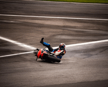Sonntagmorgen ging ich ins Warmup und wollte mich nur ein bisschen einrollen. In Turn 1 war ich aber wohl etwas zu nah am Kurb und habe einen minimal restfeuchten Sport erwischt. Ergebnis: Abflug bei 140 km/h, Motorrad rutschte in den Kies und überschlug sich...
