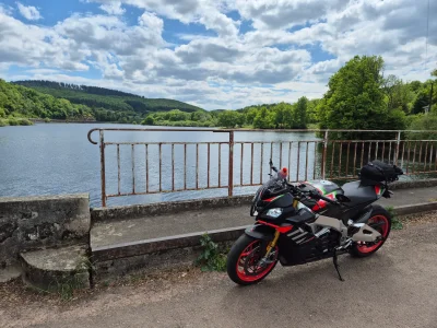 Die Frage: Generate an image of a black 2020 Aprilia Tuono Factory 1100 V4 model motorcycle driving around a curve at a steep tilt